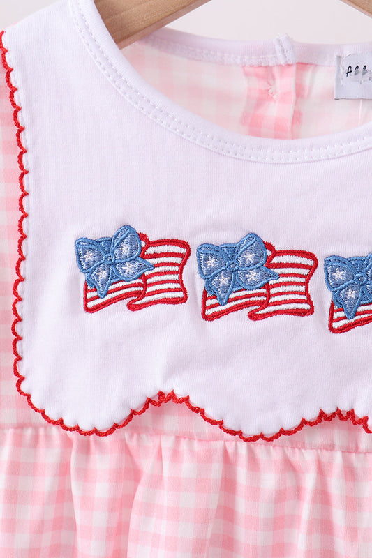 Baby Girl Pink Flag Embroidery Gingham Bubble - Fourth of July