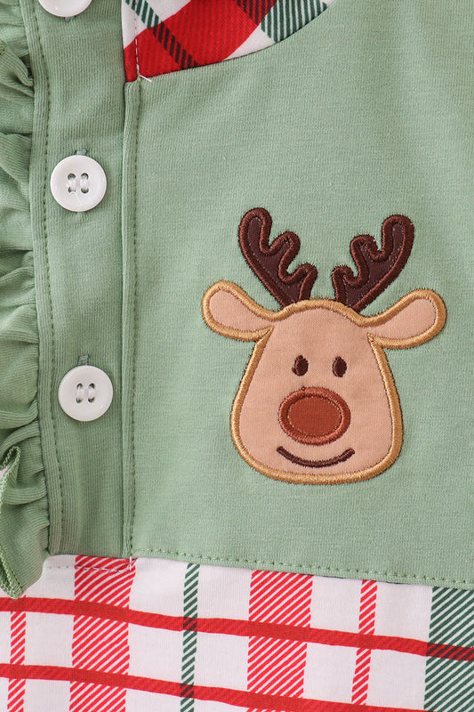 Abby & Evie - Green Christmas Reindeer Applique Pants Set