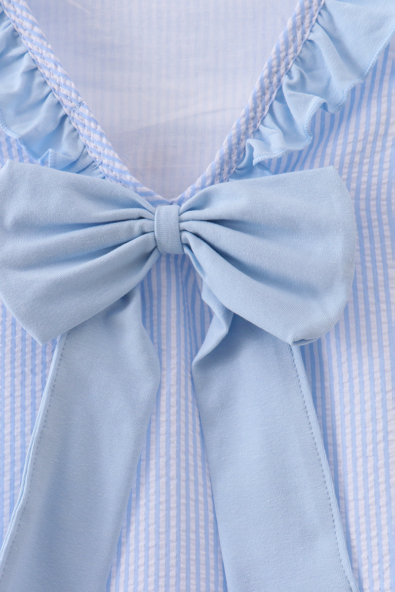 Dive into nautical charm with this delightful blue dress featuring an adorable trio of embroidered designs that capture the spirit of the sea. Playful ruffles dance along the silhouette, adding movement and whimsy to every twirl. Perfect for little adventurers who love ocean-inspired style, this dress combines comfort with character. Whether heading to a beach day or a special occasion, this nautical number brings joy and personality to any wardrobe. A splash of seaside fun that's sure to make waves!