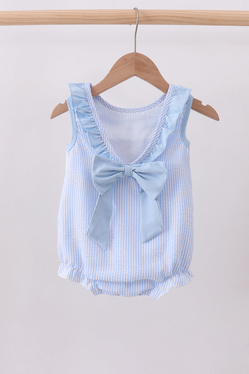 Dive into adorable style with this charming bubble featuring a playful blue nautical trio embroidery design. Crafted from classic seersucker fabric, it boasts delightful ruffled details that add movement and personality. Perfect for little ones who love the sea, this piece combines timeless nautical charm with modern comfort. The textured seersucker weave keeps things cool and breezy, while the embroidered accents bring character to every wear. An instant favorite for beach days, summer adventures, or just spreading nautical joy!