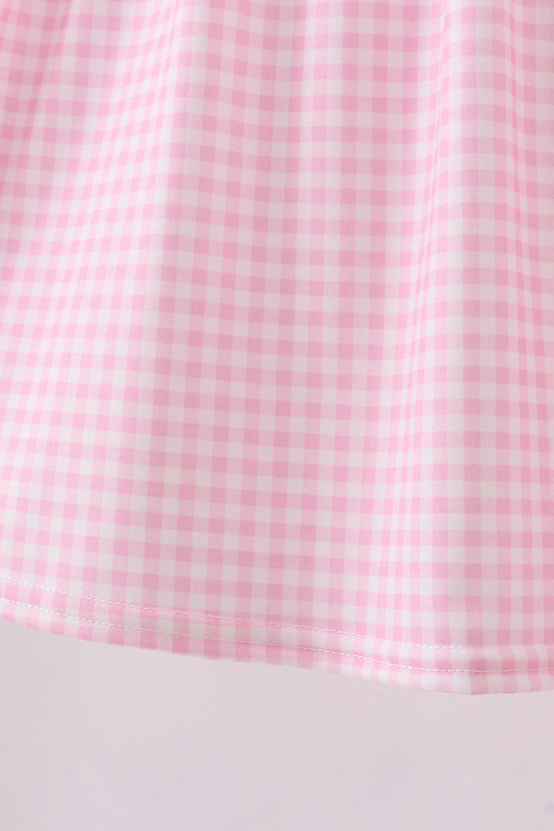 Adorable gingham dress featuring a charming horse bow design and delicate smocking details. The soft pink palette and classic checked pattern create a sweet, timeless look perfect for little ones who love equestrian charm. Comfortable and whimsical, this dress combines playful style with quality craftsmanship for those special occasions or everyday adventures.