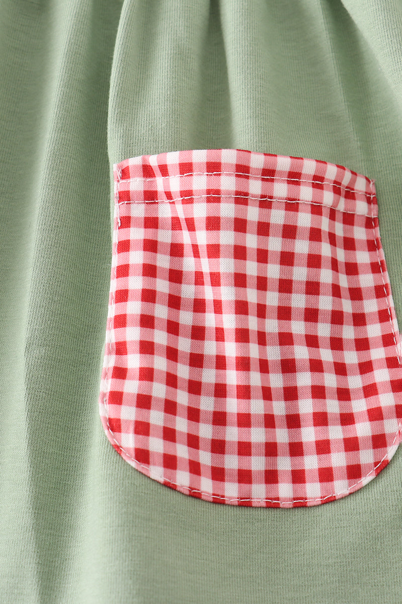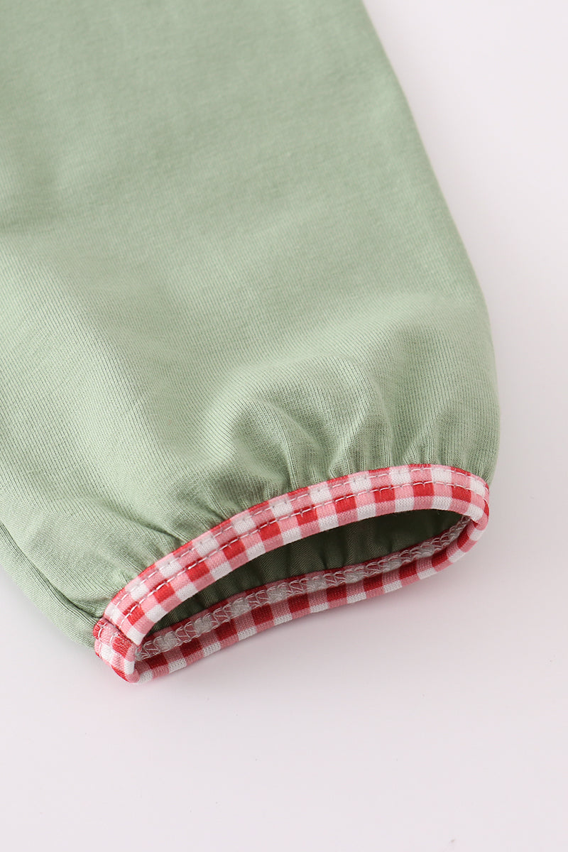Abby & Evie - Green Reindeer Embroidery Ruffle Two Piece Set